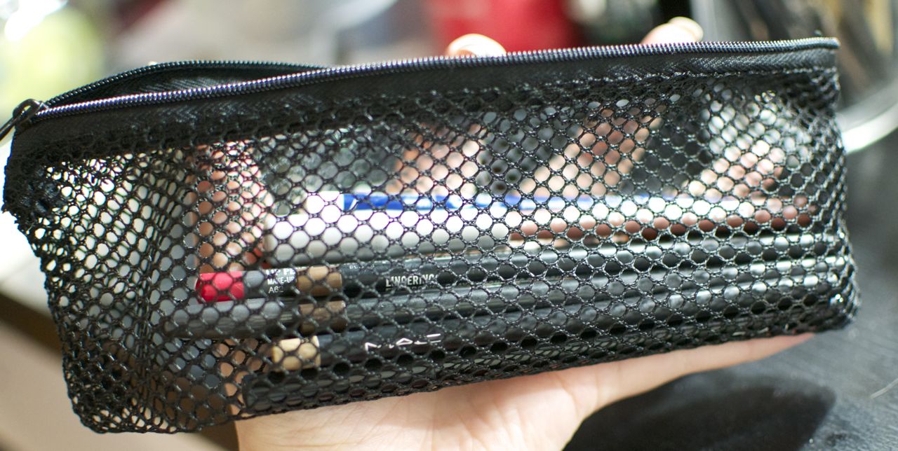 Tänään vinkkaan teille kätevästä verkkopussista, jolla maksimoidaan reissumeikkisäilytyksen tehokkuus. Duroyn vetelä verkkopenaali vetää sisäänsä kourallisen kyniä ja rullautuu meikkipussissa hävyttömän pieneen tilaan. Näin pieni asia pelasti kaikki kolme kärttyaamuani hotellihuoneessa. Kun ohuita kulmakyniä ei erikseen tarvitse etsiä ison meikkilaukun pohjalta, kaikki muutkin palikat kliksahtavat paikoilleen jotenkin jouhevammin. Ilman nettiäkin pärjää, automaattikahvi ei olekaan ihan niin pahaa,  oikeastaan nämä housut eivät ehkä kiristäkään niin kovasti, edellisen hotellivieraan jättämät kynnenpalaset voikin vaan sulkea pois mielestä – itkusilmähermoromahdus voidaan säästää käytettäväksi vaikka siellä Sephorassa, kun ne kivat kalenterit on loppu. Meikkitarvikkeet sentään ovat meidän puolellamme!